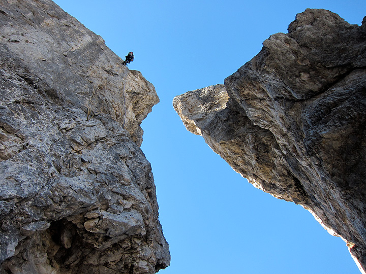 The first rappel from the summit is long and more than airy! |