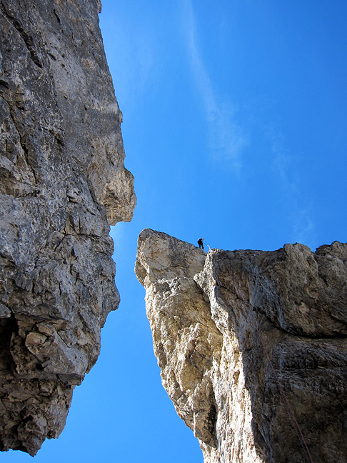 Another party ahead of us has made the step across the gap between the two towers and is heading up pitch three. |