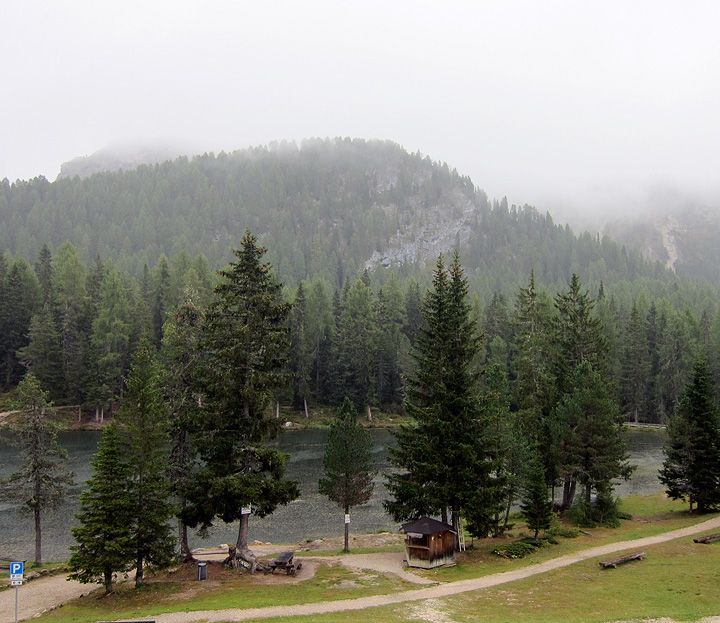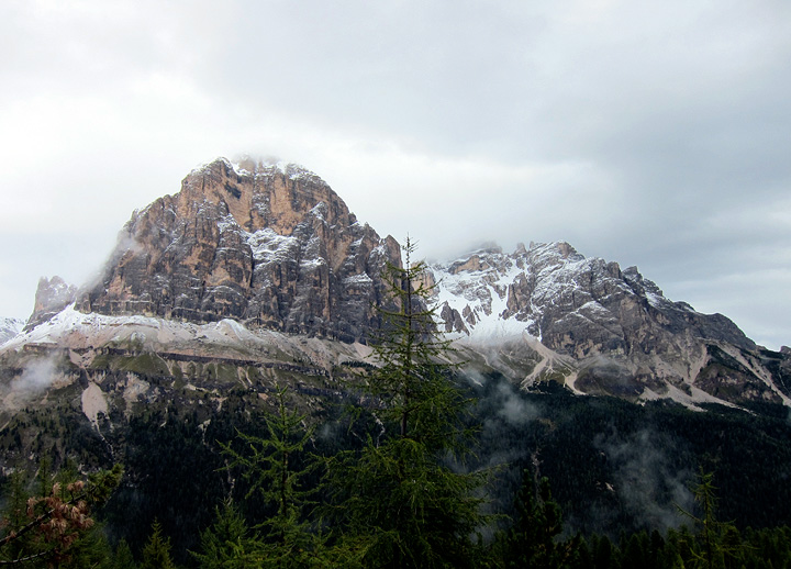 After some sight-seeing in Cortina, we headed up to the Cinque Torre for a hike at least. The gloom began to lift in the mid afternoon. |