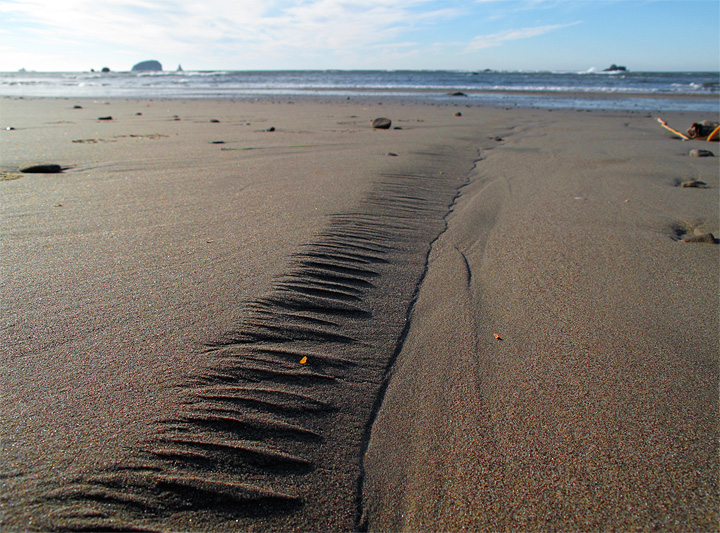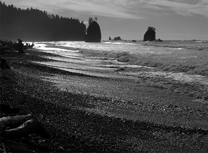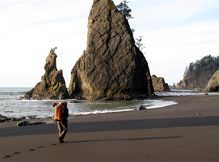After checking in with the Park rangers in Port Angeles and picking up our permit and bear-proof canister (more to combat the raccoons than their larger and more fearsome colleagues) we continued to the Rialto Beach to begin our walk. |