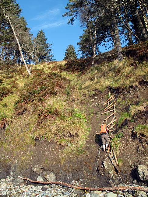 There are a few headlands that cannot be rounded, even at low water. On some of these, the Park Service has kindly added the occasional artificial aid. Unfortunately, this one was a bit worse for wear. |