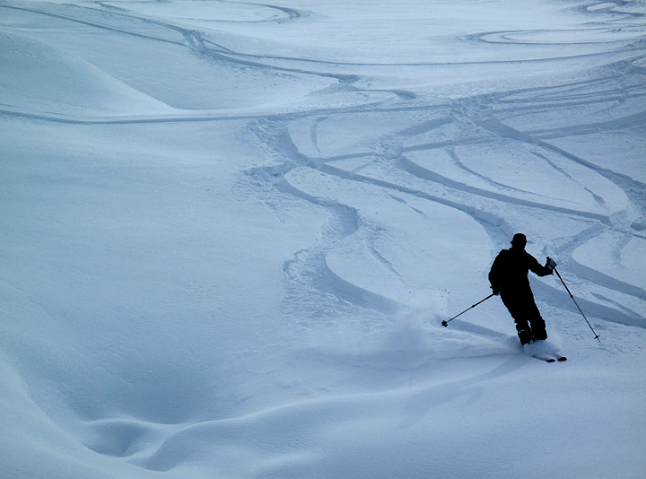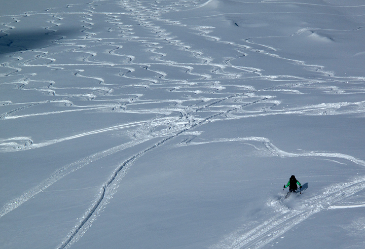 But what a reward. The protected, north facing slopes of the Combe de Bérard can usually be counted on to hold good snow. |
