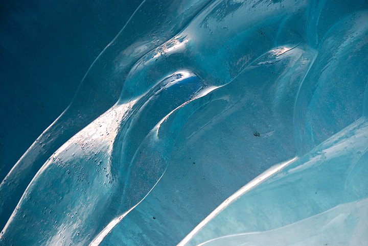Light effects in the ancient ice of the stream bed. No matter how many times we descend this route, we always are awed by its beauty. |