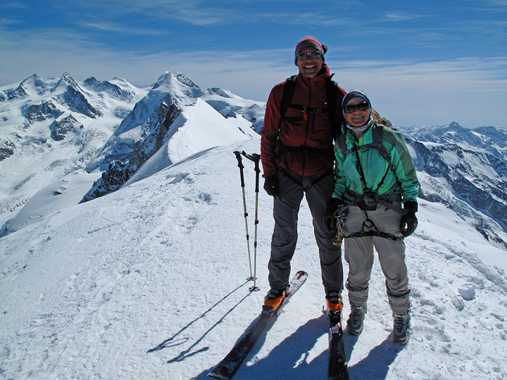 Thomas and Kathy on the summit of the Breithorn, about to start a whopping 2600 meter descent to Zermatt |