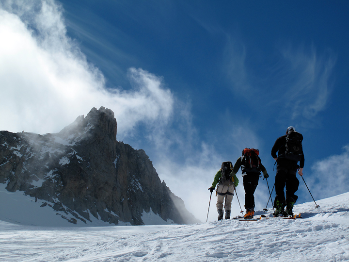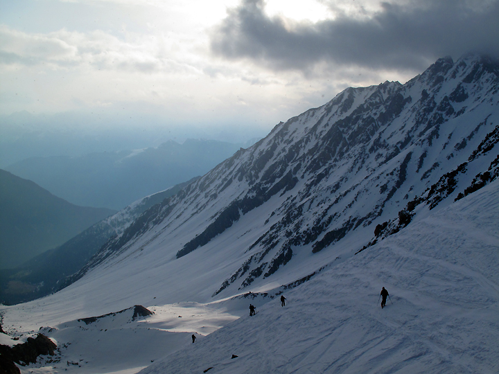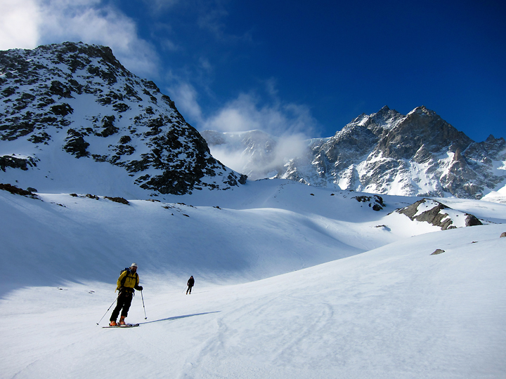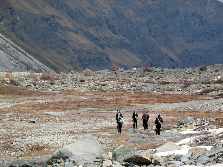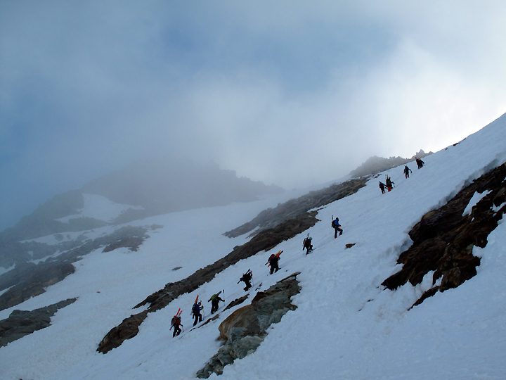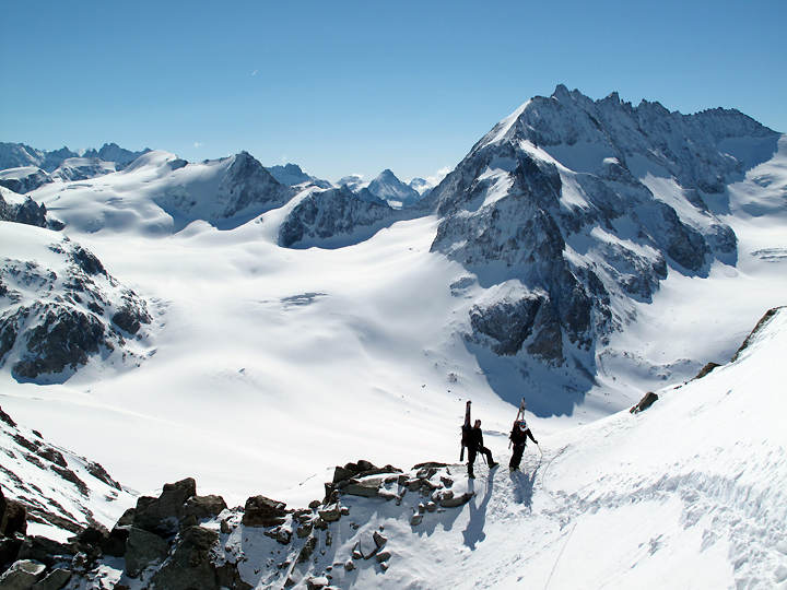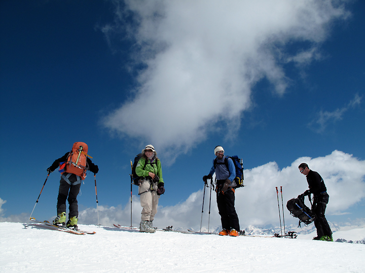 Our last Haute Route of this ski season was the Bourg-St-Pierre/ Plateau du Couloir variation, with Mont Vélan thrown in for good measure. For this trip we were joined by brothers Larry and Mike Sokolsky, their buddy Roy Tsugawa, as well as Amy Caddell of Vermont, and Shaun Guyton of New Zealand. |