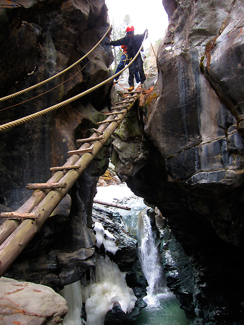 The next day, with several of the lifts shutting down already and snow conditions not optimal, we decided to do something completely different: the Gorge Adventure! Larry clambers through the Gorner Gorge on the Via Ferratta equipped by the local guides and climbing authorities. Thank you for this, Zermatt! |
