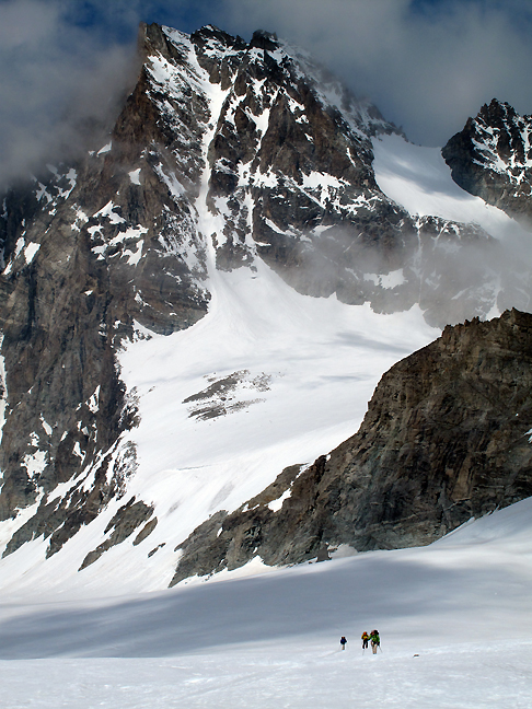 Calm but mixed weather, not too hot, not too cold, we make our way here up toward the Fenêtre de Saleina. |