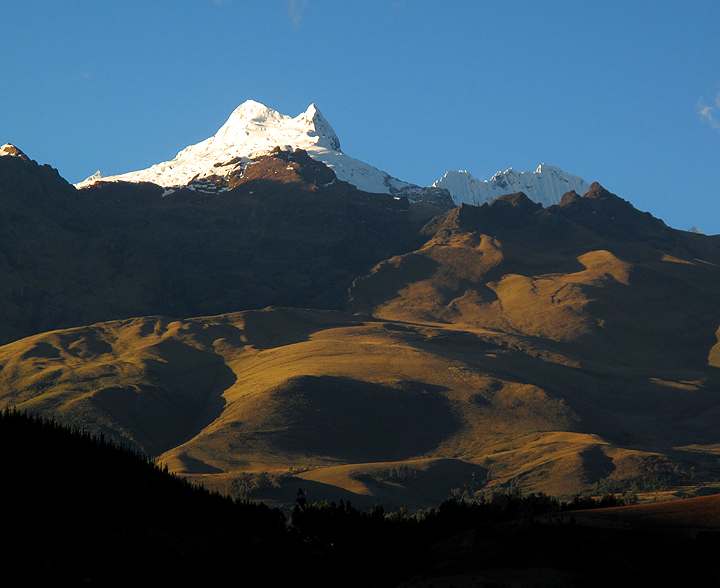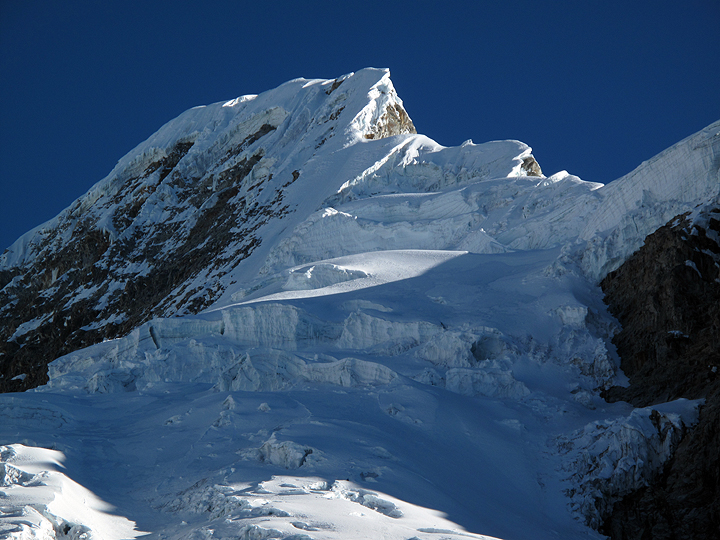Ranrapalca in the late afternoon sun, from Vallunaraju high camp. |