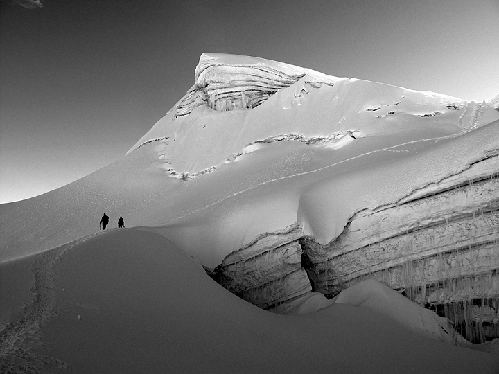 Most of the route up Vallunaraju is a straightforward glacier, though there were some impressive crevasses. |