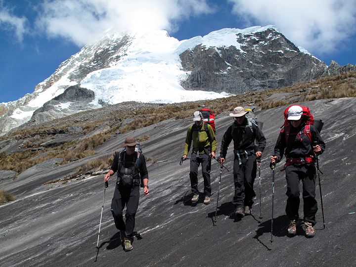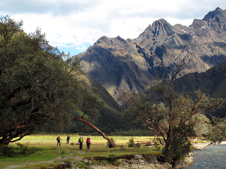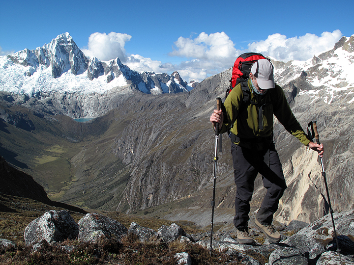 Because we were able to arrange burros for a base camp pick-up the very next day, we had time to finish out the classic Santa Cruz circuit trek before heading in to climb our next peak, Tocllaraju. In this photo, we are a couple kilometers away from our camp in Huaripampa. |