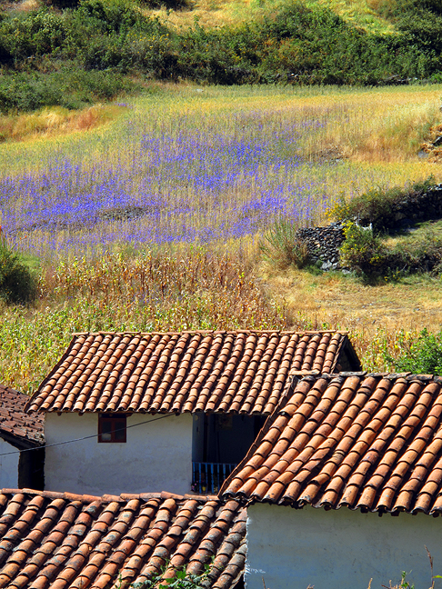 The following day, passing tiled roofs and cultivated fields of chocho, a pea-like crop. |