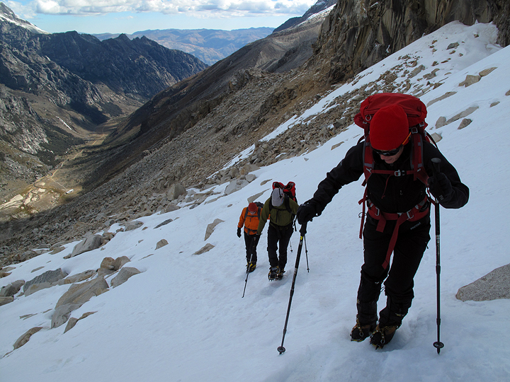 Emery heading down from high camp on Tocllaraju |