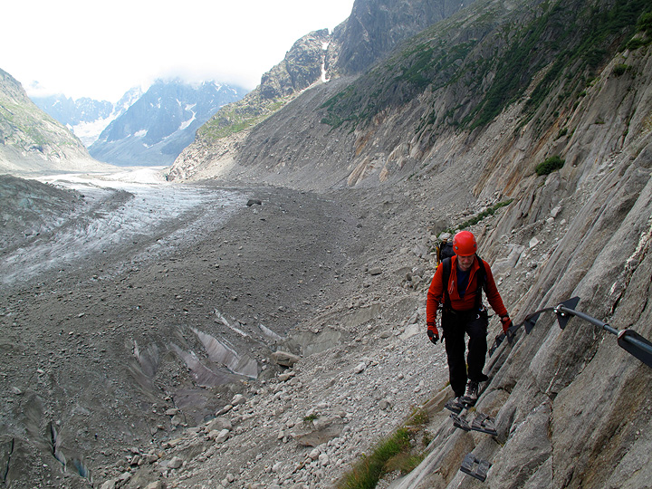 Norm on the "via ferrata" climbing back up to Montenvers. |