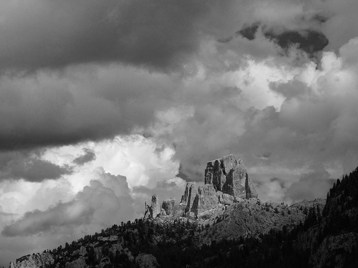 Looking across the valley at the Tofana di Rozes from the Cinque Torri. |
