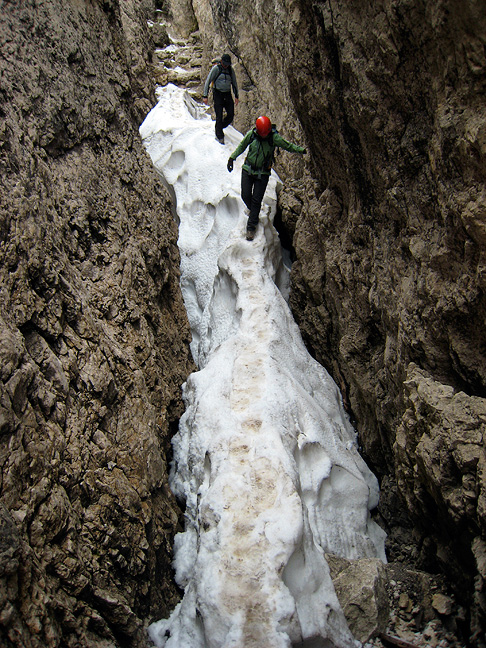 The descent was a mixed affair, trails, snow, ladders and World War One trenches. |