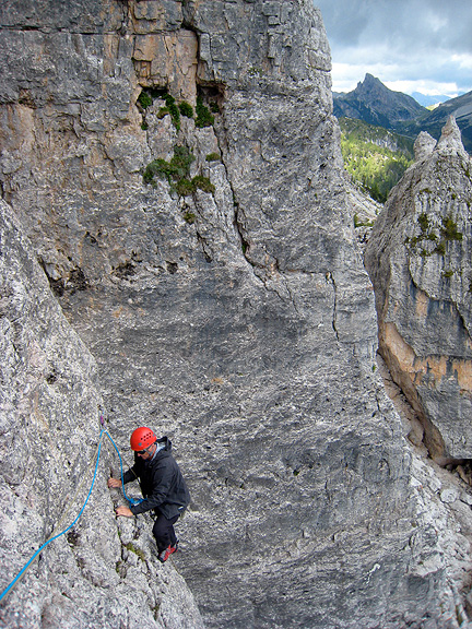 Again, with a dubious weather forecast, we opted for something not too committing. Climbing in the Cinque Torri seemed just right. |