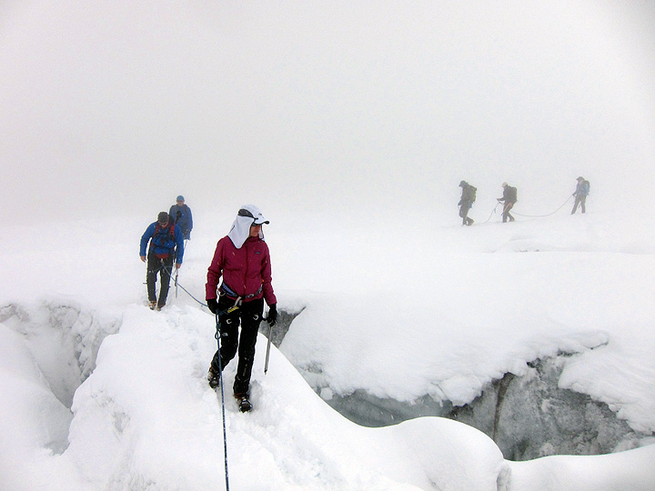 Our shake-down afternoon on the Tour Glacier was spent mostly in thick fog with lightly falling snow. |