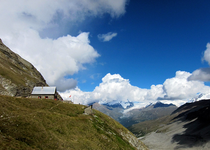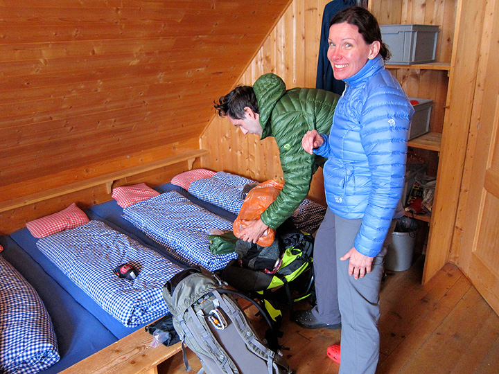 A couple of hours of boulders and talus, and voilà! At last the Schonbiel hut comes into view. |