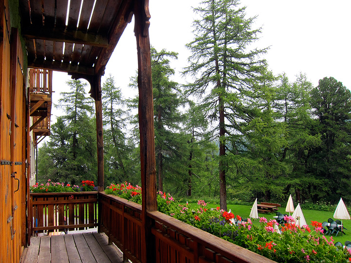 A good night's sleep in the Hotel Kurhaus in Arolla was what the doctor ordered for sore feet and sweaty bodies! The gardens of the hotel beckon. |