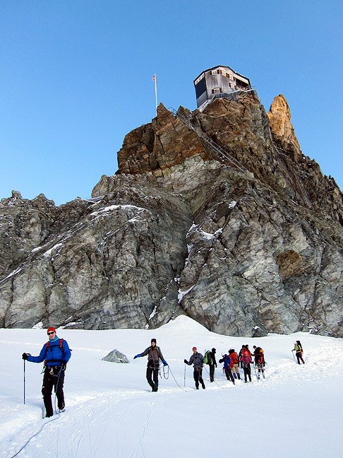 Heading out from the Albert Premier hut on day 2, the Aiguille du Chardonnet looks lovely in its coating of new snow. |