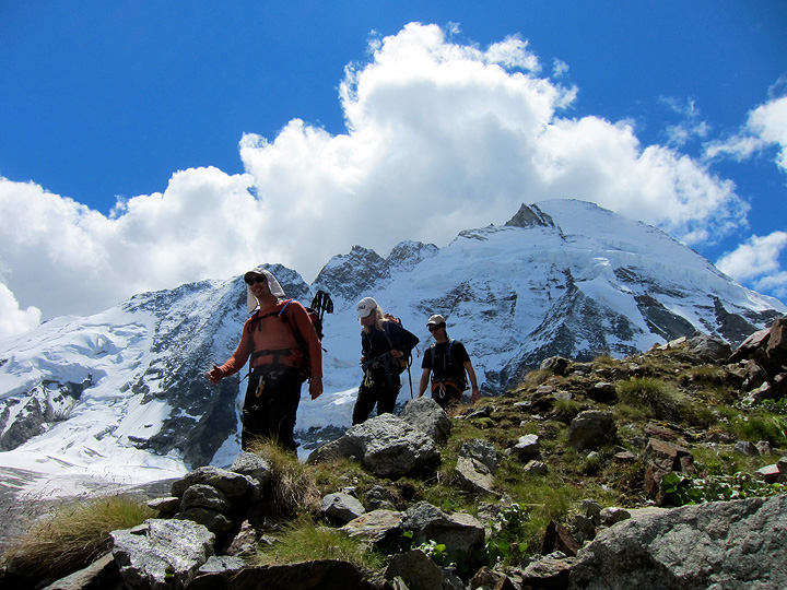 | Kathy's summer Haute Route Glacier Trek was a great success again this year. She was joined by 6 strong trekkers and climbers who quickly became a tight-knit group of friends.