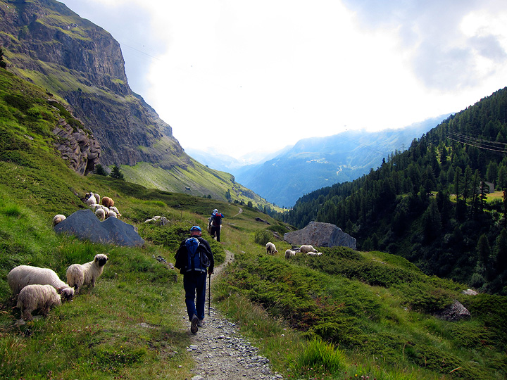 Fluffy sheep move reluctantly out of our path as we approach the hamlet of Zmutt. |