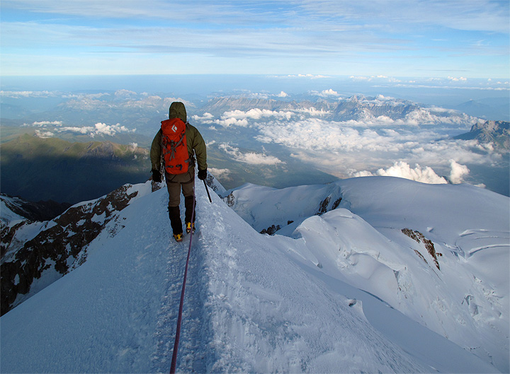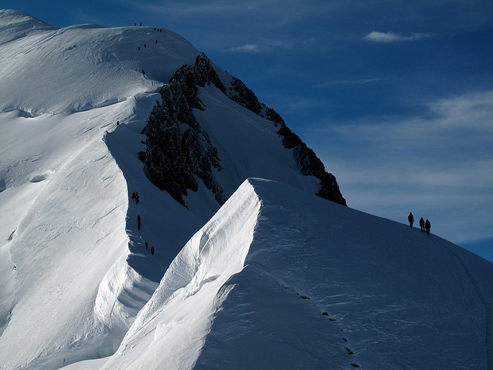 And early on our second day, we climbed Mont Blanc. Here we are looking up the Bosses Ridge, the last hour and a half of the climb (more or less). |
