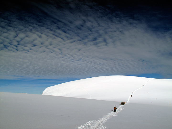 Crossing the plateau at the Dome du Gouter. We easily got back to Chamonix that night for a well-deserved rest. |