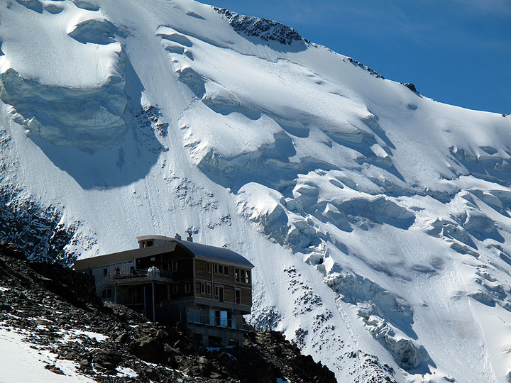 Buddies, co-workers and Denver-ites Roger and Grant spent several days with Kathy and Mark in the Alps this summer. First, Roger joined Mark for 3 days, that included Mont Blanc and the Arête des Cosmiques. Photos from those climbs are on this page. Then both Kathy and Grant entered the picture, and the four of us climbed for another six days, starting in Chamonix but moving to the Saas - Zermatt area. Photos from those climbs can be found here. And finally, Mark and Grant climbed together for another four days. Click here for pics of those climbs. |