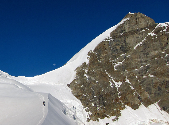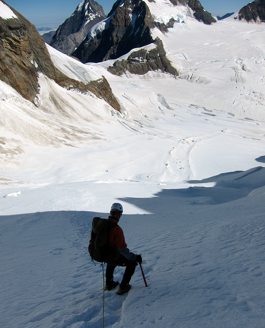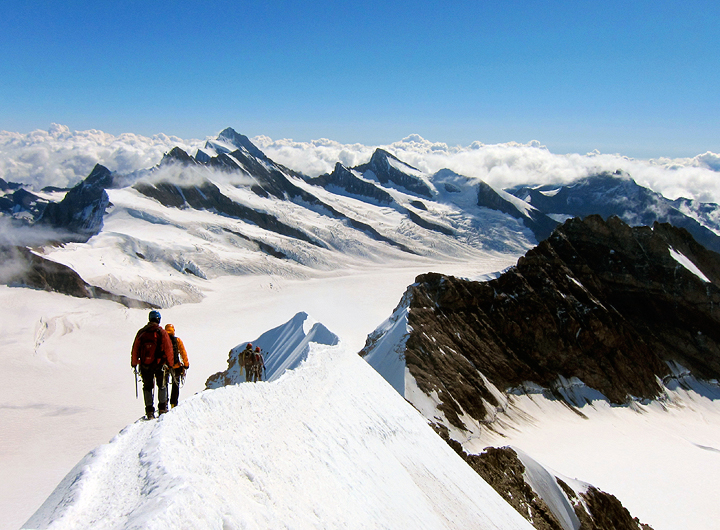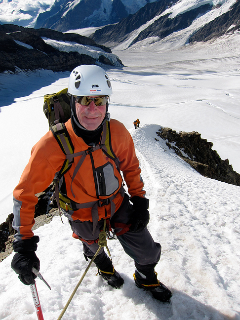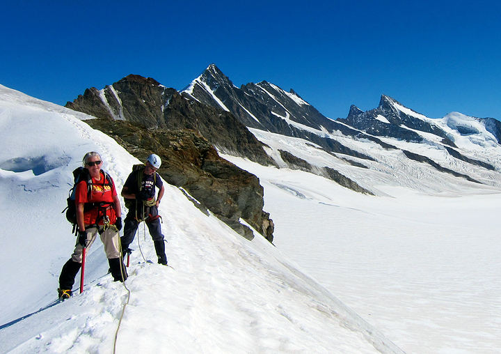 On the same ridge, with the Fiescherhorns and Grünhorns in the background. |