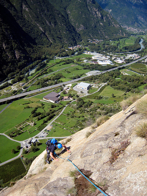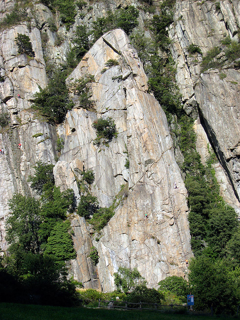 Up and down quickly, we had time for one more climb. Topo Pazzo is the classic 5c in the area. Three fun pitches on amazing rock. Mouse over to see the line. |