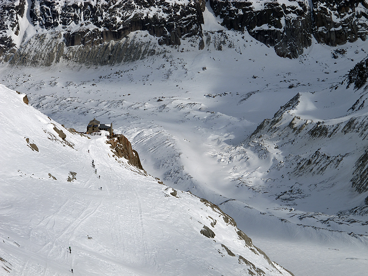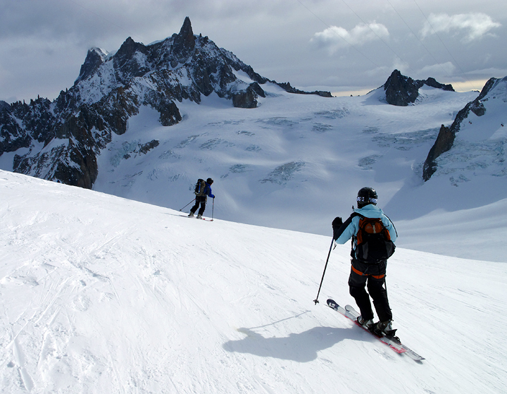 Vicki McGrath from the Bay area took time out from a family visit/ski week in Switzerland to ski the Vallée Blanche. |