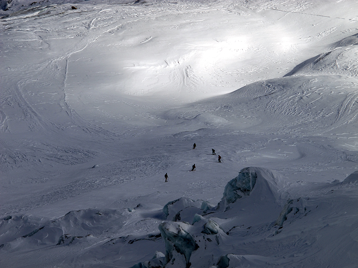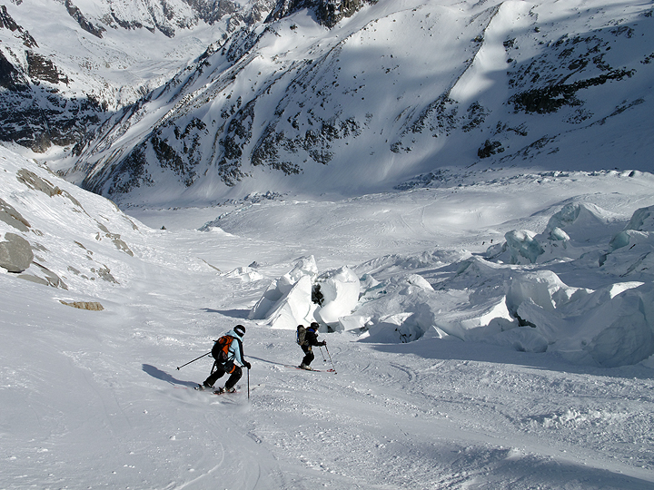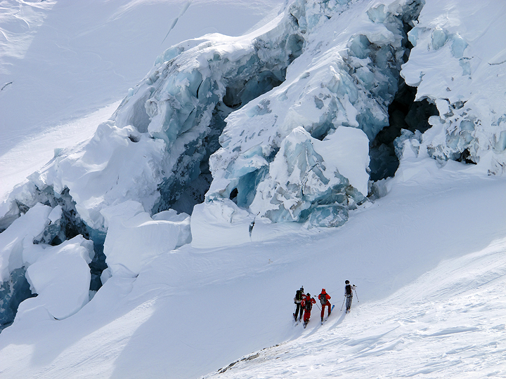 After lunch, it's down again to the base of the Géant Icefall, where we get a privileged peek into the crumbly bits. |