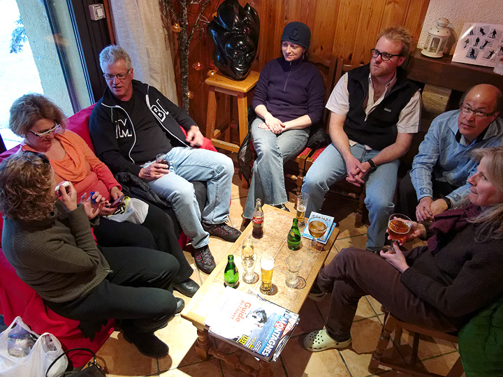 The après-ski, er, "de-brief" in the local gathering place. Thanks to all of our friends new and old for making this a terrific week! |