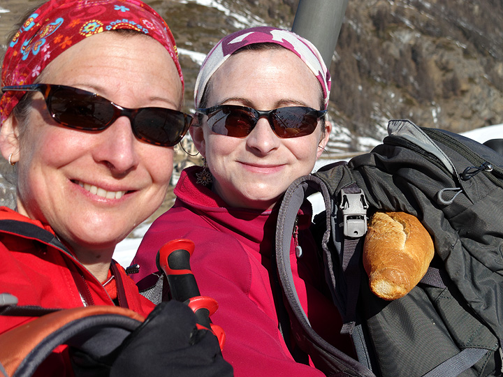 After a night in a hotel in Abries, we ride lifts once more to get up high for the start of our final day on the tour. Milena is ready for her picnic! |
