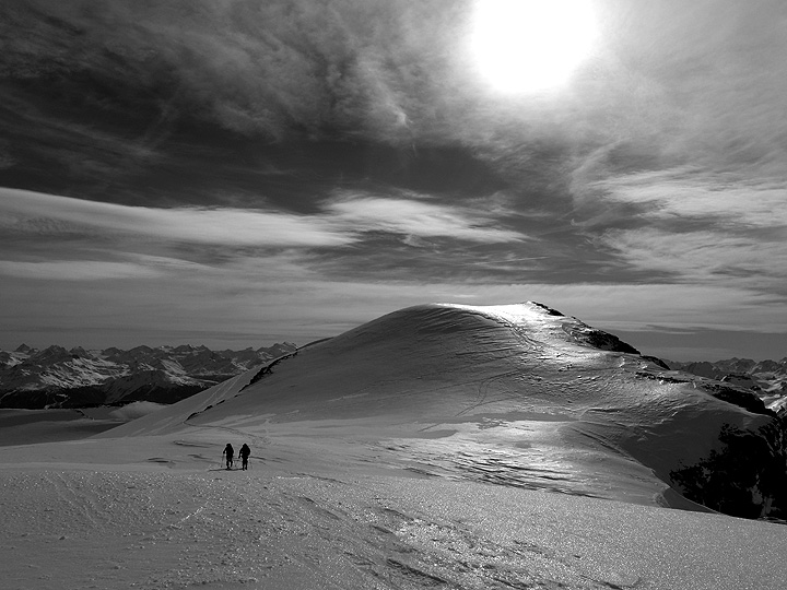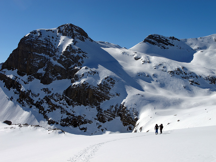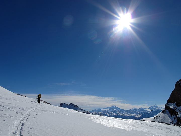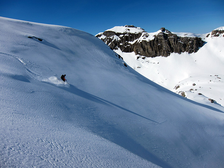 After riding the drag lifts at Engstligenalp, we set off to climb the Felshore, a great ski objective. |