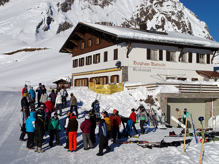The Berghaus Bärtschi in Engstligenalp, our home for the night. There was a school group there, as well, adding to the fun. |