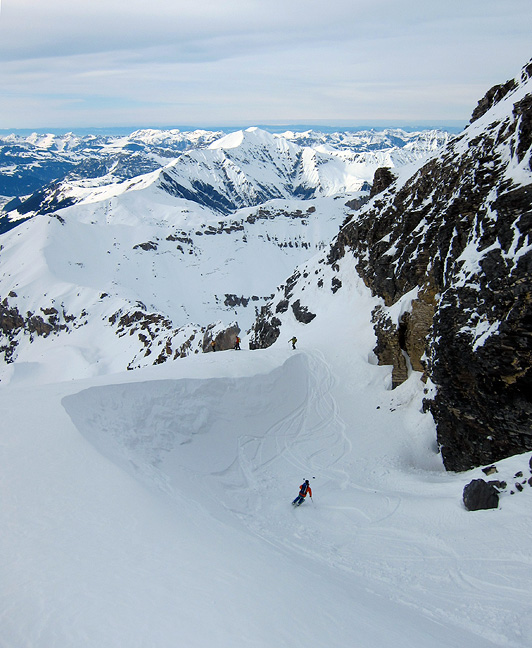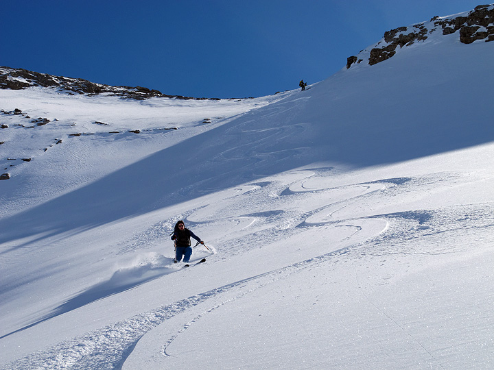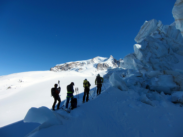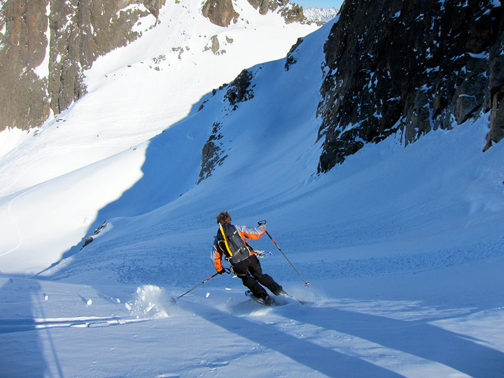 And the north-side descent of the Col Beugeant. This year, there was a short rappel / lower to get to skiable snow. |