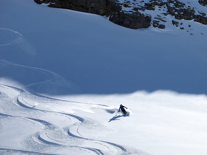 Here and there we found great snow, still undisturbed by the winds of the last two weeks. |