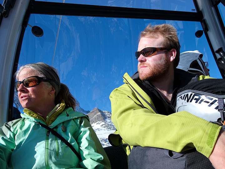 We continued our descent to Kandersteg, had the obligatory beer (or two), then train back to Sierre, jumped in the cars and drove to Täsch. Another train and we were in Zermatt for the night. The following morning, it is up to the Klein Matterhorn for the Schwarztor. |
