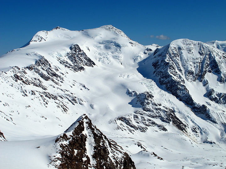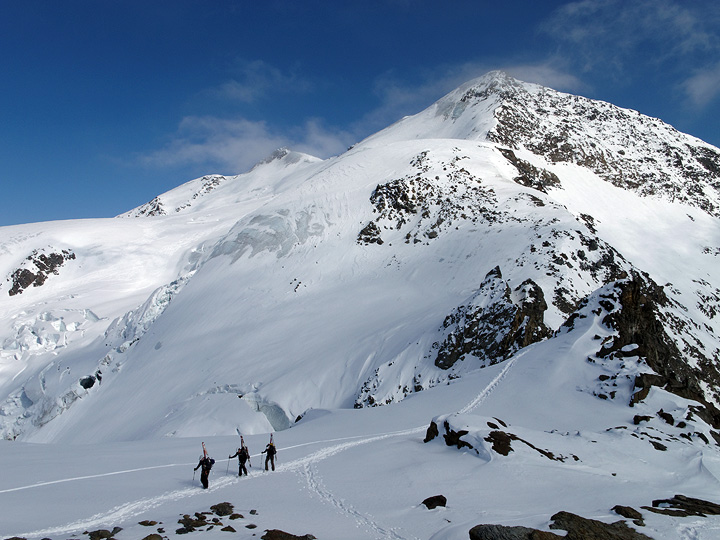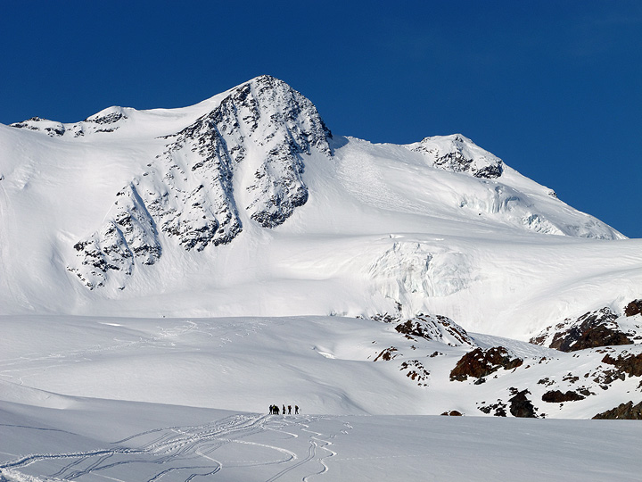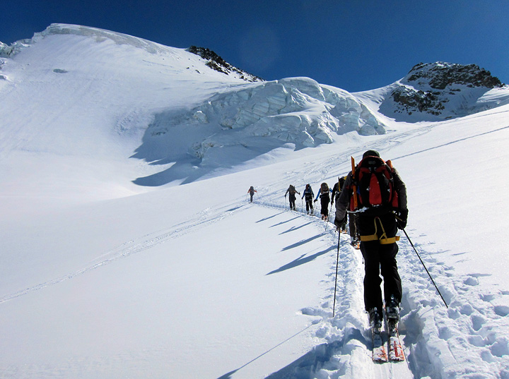 Day four it's time for Pizzo Tresero. It being a lovely Saturday, we had oodles of company on this day. Still we managed to find some relatively untracked snow on the way down. |