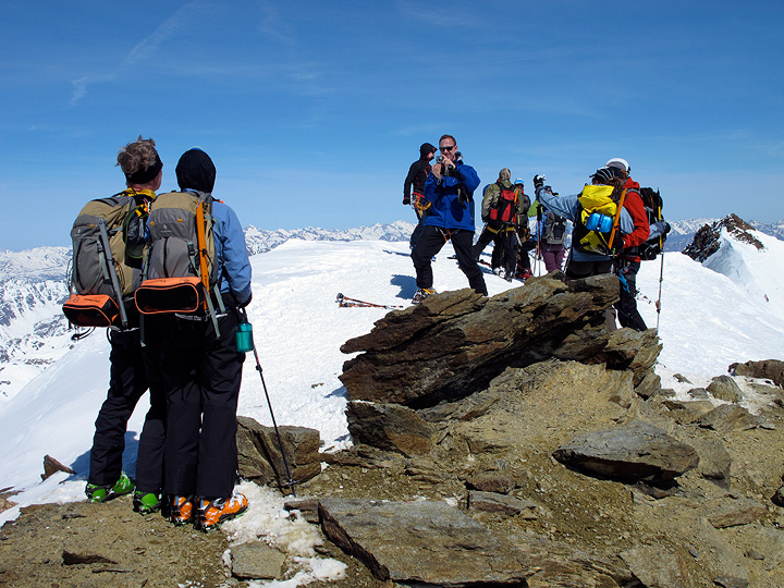 On top of Cevedale, cameras are a'blazin'. |