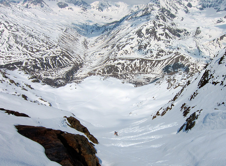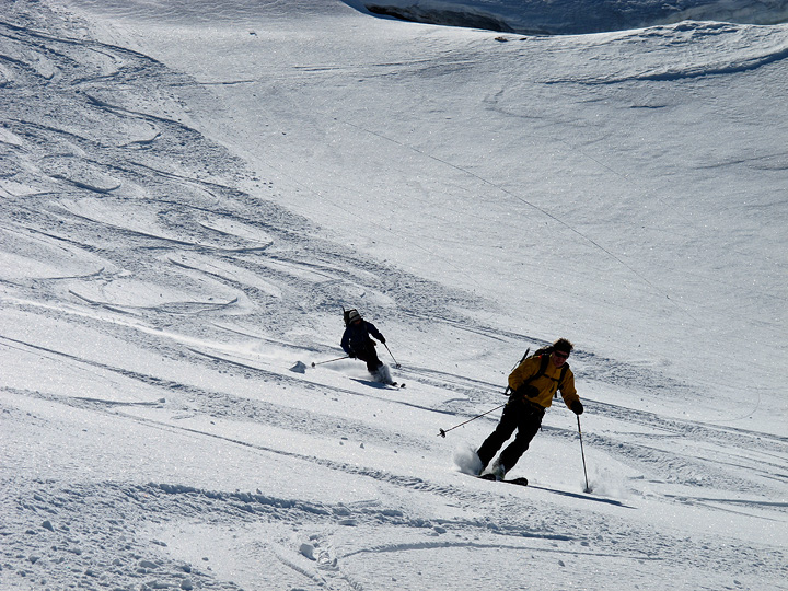 On our last day we took it easy, up and over the Suldenspitze back into Sulden. We wandered a bit and found still virginal patches of powder even after all the skiers this area has hosted over the past weeks. A great run to end a great week! |