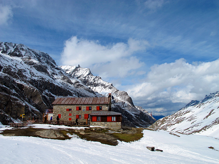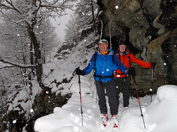 The "Gang of Four to Six" was back in the Alps for a new trip, a tour south of the border in Italy with a culminating ascent of the Gran Paradiso. The forecast was grizzly and the weather gloomy as we headed in to the Benevolo hut on our first day, already a change of plan and concession to the poor prognostication. |