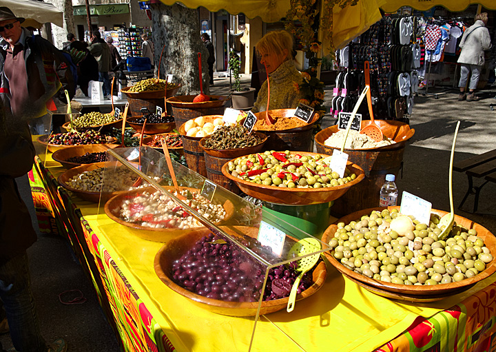 The next morning, our last day, we strategized to visit a market, then take in some more rock climbing on our way back north. We stopped at the market in nearby Bédoin, where everyone found something they couldn't resist. Crockery, textiles, gifts, food. |
