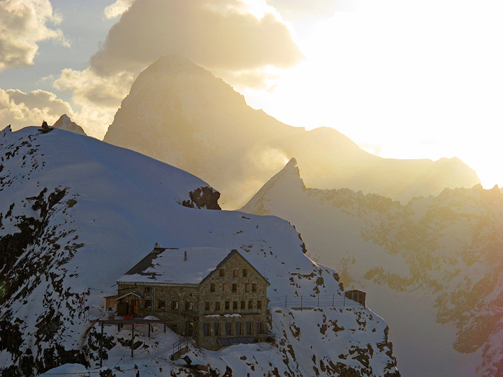 On day 4 we headed over to Verbier, enjoying the sight of a new snowfall. We continued on to the Cabane de Prafleuri, taking in the summit of Rosa Blanche in the fog, along the way. |