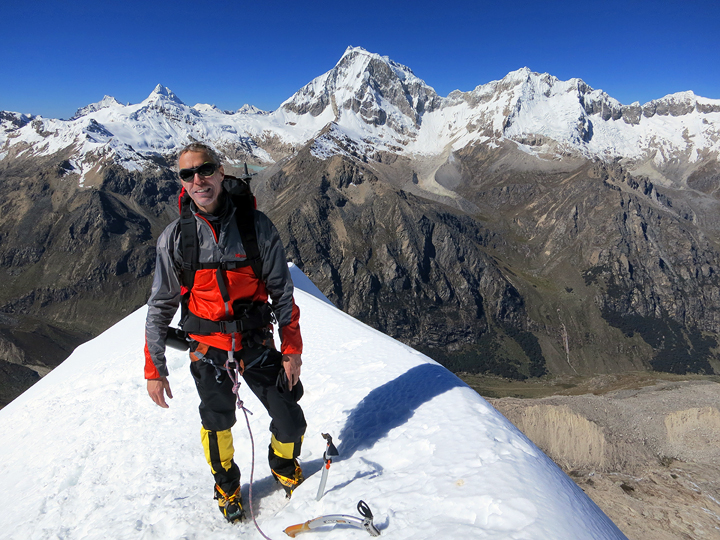 Arnaldo on the summit of Ishinca, with Ranrapalca behind. |