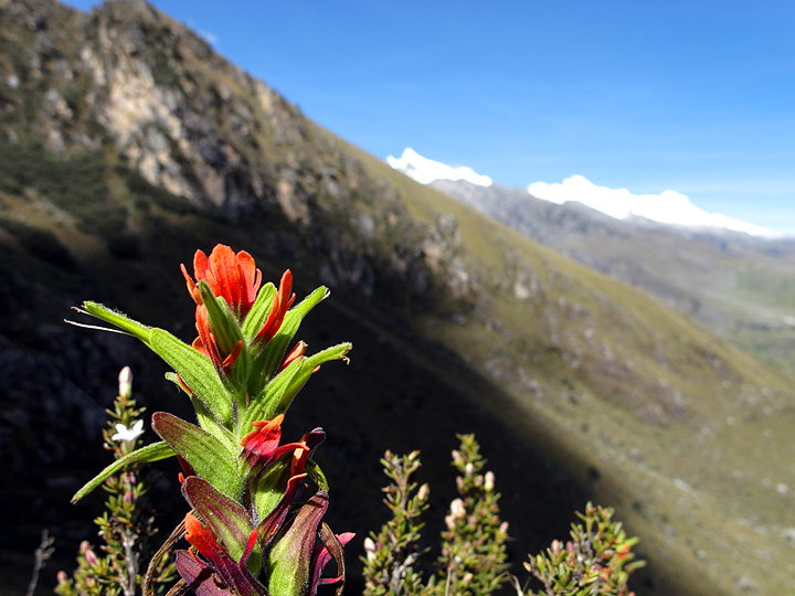 Our first day at altitude, we like to hike up to Laguna Churup for the exercise and for the views. The trailside was full of flowers as well, the rainy season being just ended. Mark spotted some Indian Paintbrush, looking pretty much just like it does up north. |