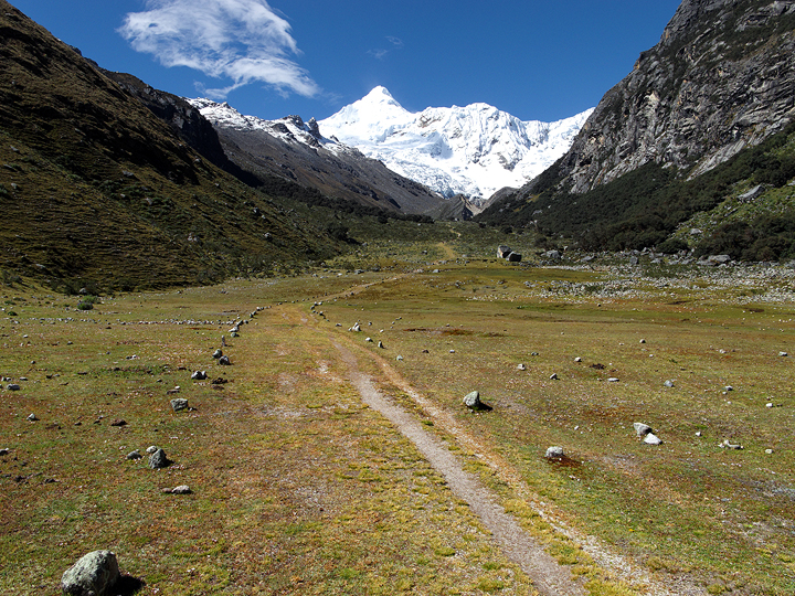 The next day it's in to the Ishinca Valley. This is one of our first good views of Tocllaraju as we approach our base camp. |