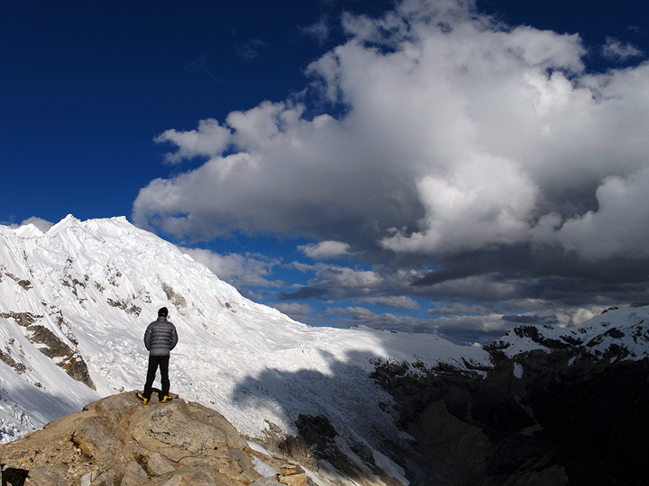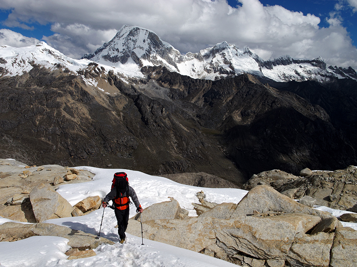 Our final climb in the Ishinca Valley is Tocllaraju. Brian approaches high camp. |